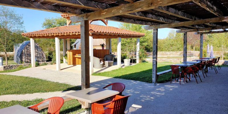 Tables and chairs are available for you to sit in the shade of a beautiful 40m² pergola.