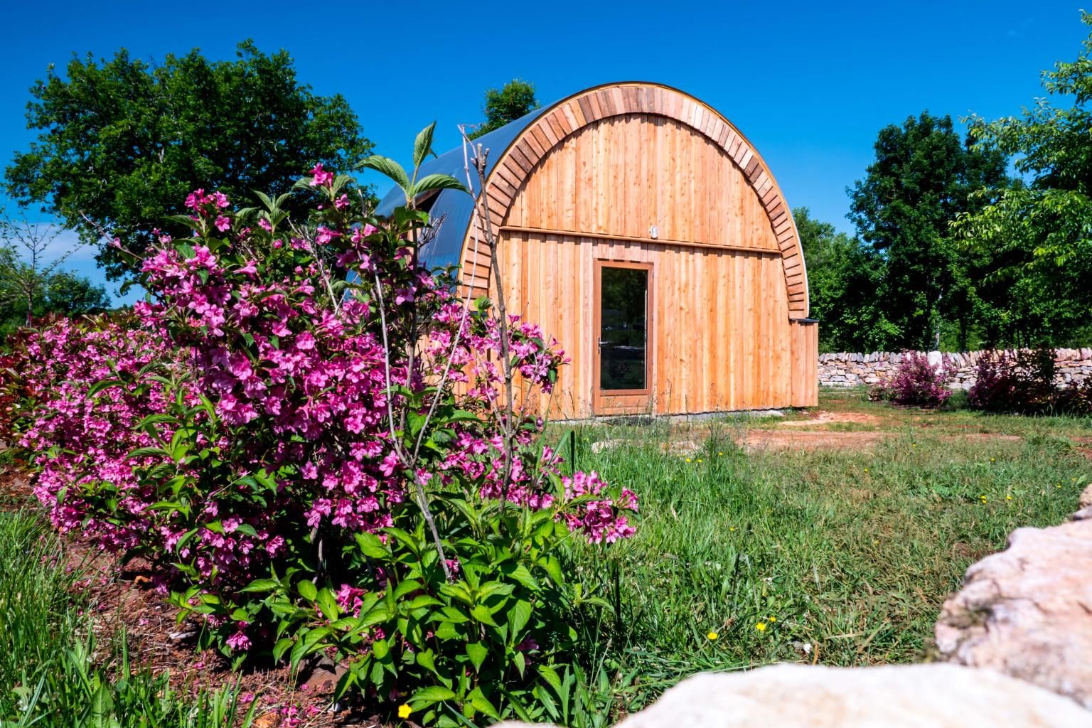 We have six unusual wooden pods, locally designed and unique to the campsite.