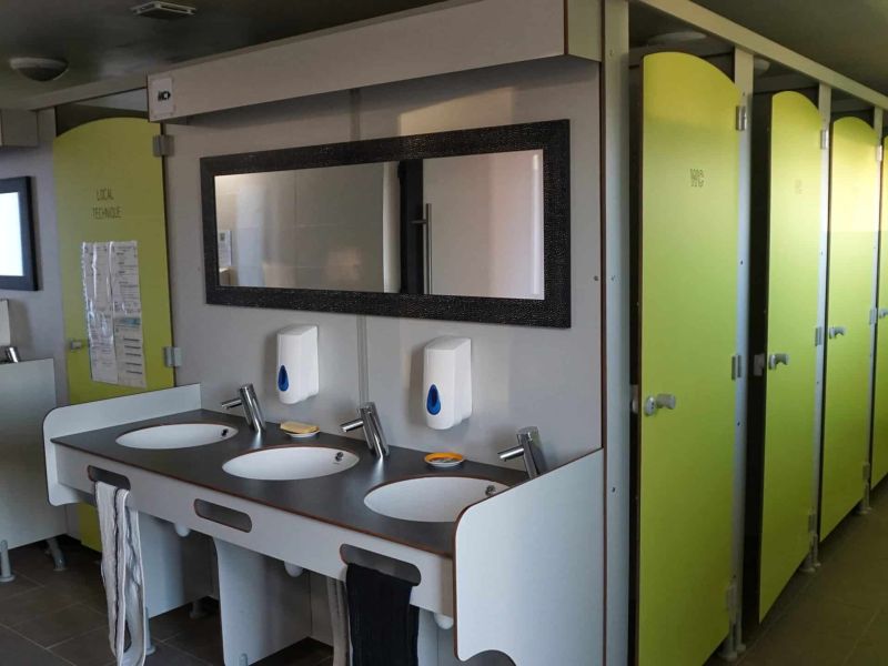 The sanitary facilities, located in the main building, are enclosed and isolated from the outside. Hot water is provided by a solar thermal panel system and waste water is treated directly on site by a planted bed sanitation system. You will find: