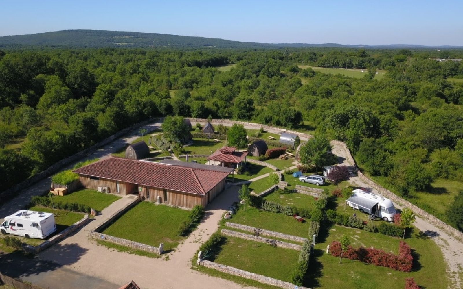 The campsite has 8 pitches separated by vegetation and a motorhome pitch (motorhome service areas are available free of charge in the municipalities of Lacapelle Marival and Figeac). All pitches have electricity connections.